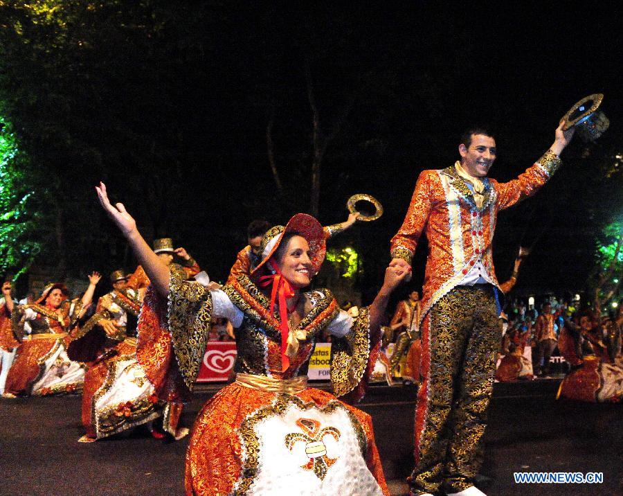 Dancers perform during the Saint Anthony festivities in Lisbon June 12, 2014. Every year, people in Lisbon celebrate the festivities of the Day of Saint Anthony, the city's patron saint. (Xinhua/Zhang Liyun)