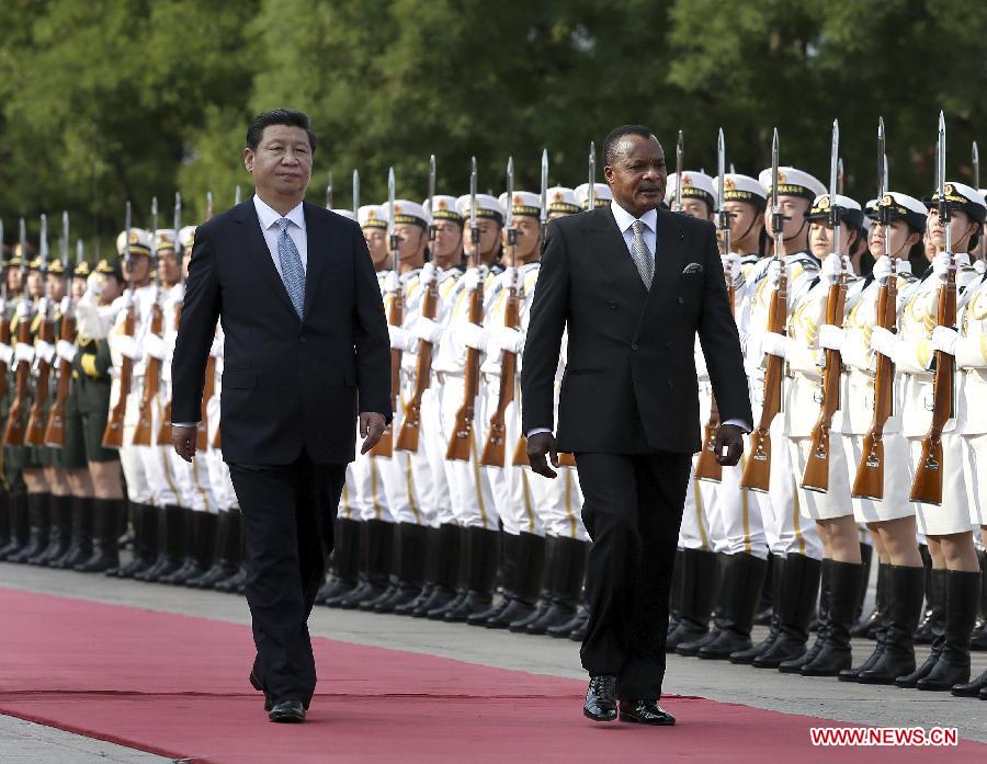 Prior to the talks, Xi held a red-carpet ceremony to welcome Sassou.