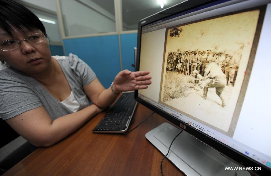 A staff member presents photos taken by the Japanese invaders about the Nanjing Massacre at the Second Historical Archives of China in Nanjing, capital of east China's Jiangsu Province, June 12, 2014. China is applying to UNESCO to list 11 sets of documents relating to the 1937 Nanjing Massacre on the Memory of the World Register. The documents, which include diaries, films, photographs and testimonies, depict the brutality of Japanese invaders in the massacre. (Xinhua/Han Yuqing) |