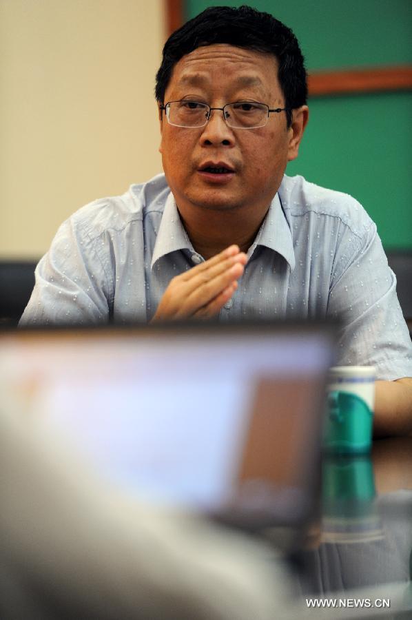 Researcher Guo Biqiang introduces the bid process of the files on the Nanjing Massacre at the Second Historical Archives of China in Nanjing, capital of east China's Jiangsu Province, June 12, 2014. China is applying to UNESCO to list 11 sets of documents relating to the 1937 Nanjing Massacre on the Memory of the World Register. The documents, which include diaries, films, photographs and testimonies, depict the brutality of Japanese invaders in the massacre. (Xinhua/Han Yuqing) |
