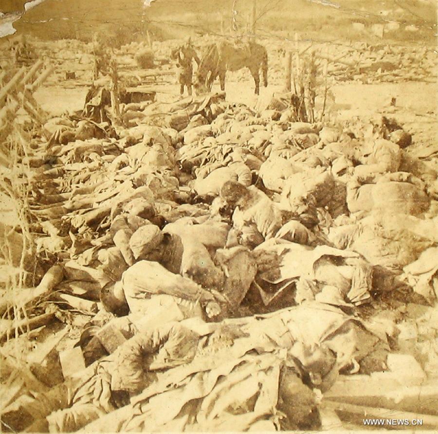 File photo provided by the Second Historical Archives of China shows a scene of the Nanjing Massacre in 1937. China is applying to UNESCO to list 11 sets of documents relating to the 1937 Nanjing Massacre on the Memory of the World Register. The documents, which include diaries, films, photographs and testimonies, depict the brutality of Japanese invaders in the massacre. (Xinhua) |
