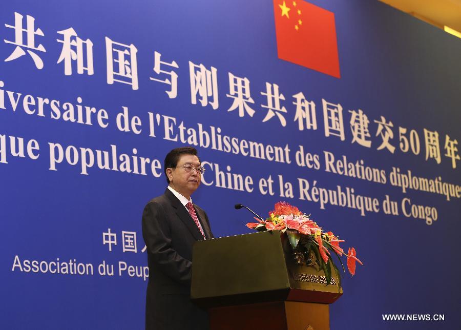 Zhang Dejiang, chairman of China's National People's Congress (NPC) Standing Committee, speaks at the celebration of the 50th anniversary of the establishment of diplomatic relations between China and the Republic of Congo in Beijing, capital of China, June 13, 2014. (Xinhua/Pang Xinglei) |