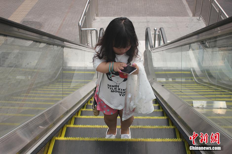 Hai Lulu checks job information by mobile phone on June 12, 2014. (CNS/Ma Yiheng)