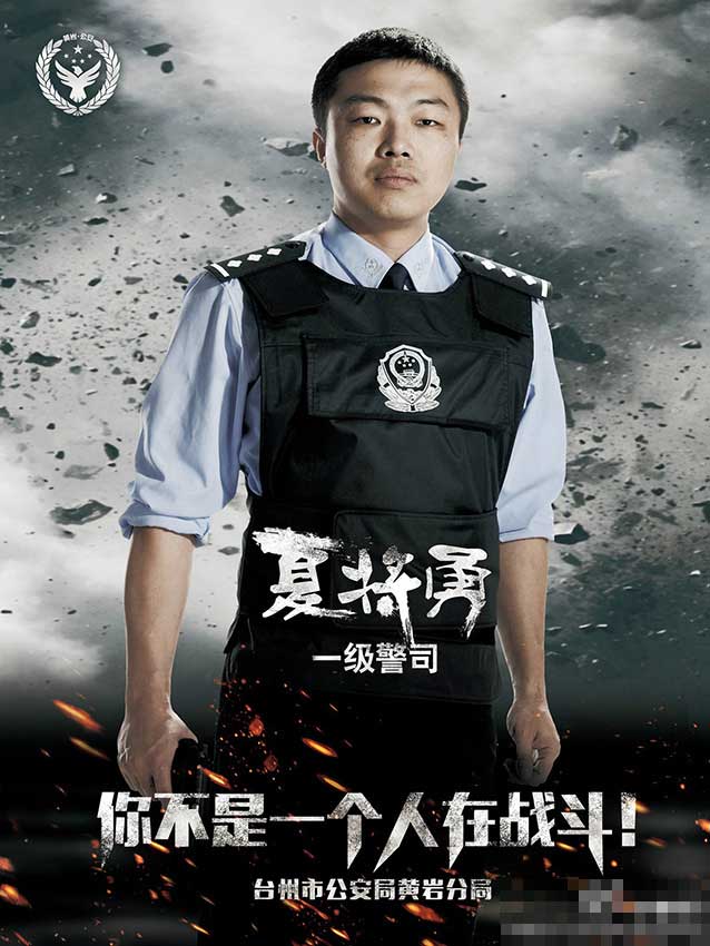 A group of pictures featuring police in Taizhou city, eastern China's Zhejiang Province, have become very popular on the Internet recently because they are similar to the film poster for Hong Kong films. (Photo source: People.com.cn)
