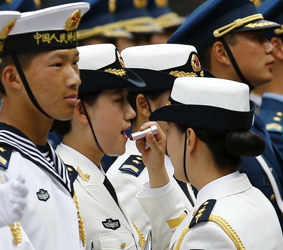 Clad in skirts, riding boots and hair pulled back into the classic chignon, female People’s Liberation Army honor guards have attracted the attention of the world since they made debut on May 12. Their knee-high skirts and five-centimeter heels singled them out from the rows and rows of sober, hunter-green uniforms of male soldiers. (Photo source: 81.cn)