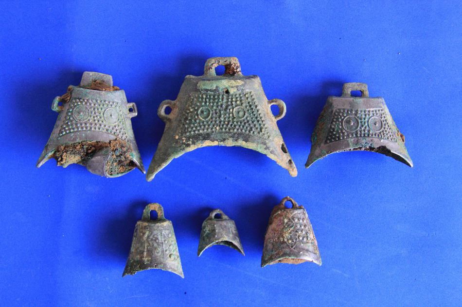 Bronze bells unearthed in Zhaohua ancient tombs. (Xinhua/ Xiao Yonghang)