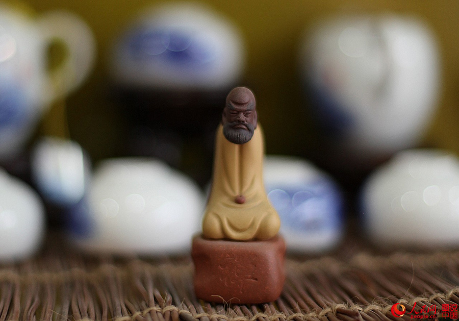 A tea pet is the pet kept by tea lovers and nourished by tea water. It is a kind of artware made by purple sands or clay. When enjoying the tea, the drinker will smear or sprinkle tea water on the tea pets. As time goes by, the tea pets will be moist with soft luster and tea aroma. Tea pets usually take the shape of mythical Chinese beasts, human figures and small animals to express good wishes.(People's Daily Online)