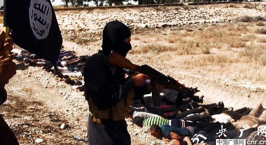 An image uploaded on June 14, 2014 on the jihadist website Welayat Salahuddin allegedly shows militants of the Islamic State of Iraq and the Levant (ISIL) executing dozens of captured Iraqi security forces members at an unknown location in the Salaheddin province. A major offensive spearheaded by ISIL but also involving supporters of executed dictator Saddam Hussein has overrun all of one province and chunks of three others since it was launched on June 9. [Photo/Cnr.cn]