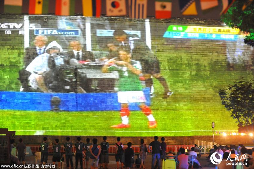 Watching the World Cup at a bar or cinema is no longer new - now, Nanjing citizens can enjoy the broadcast on the Ming Dynasty (1368-1644) city wall. Since the morning of June 13, 2014, the World Cup matches have been broadcasted on the city wall through projectors in Laomendong historical block of Nanjing. Many citizens were attracted here to watch the matches on the "screen" as big as 1,000 square meters.(People's Daily Online) |