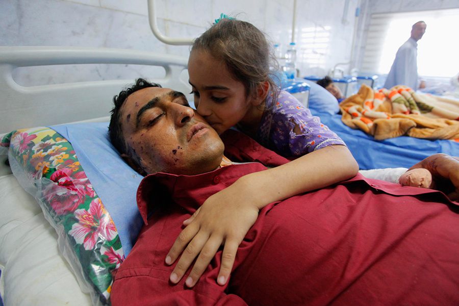 A girl kisses her father who is injured in a car bomb attack in Shelia, Iraq on June 4, 2014. (Xinhua/ RT)
