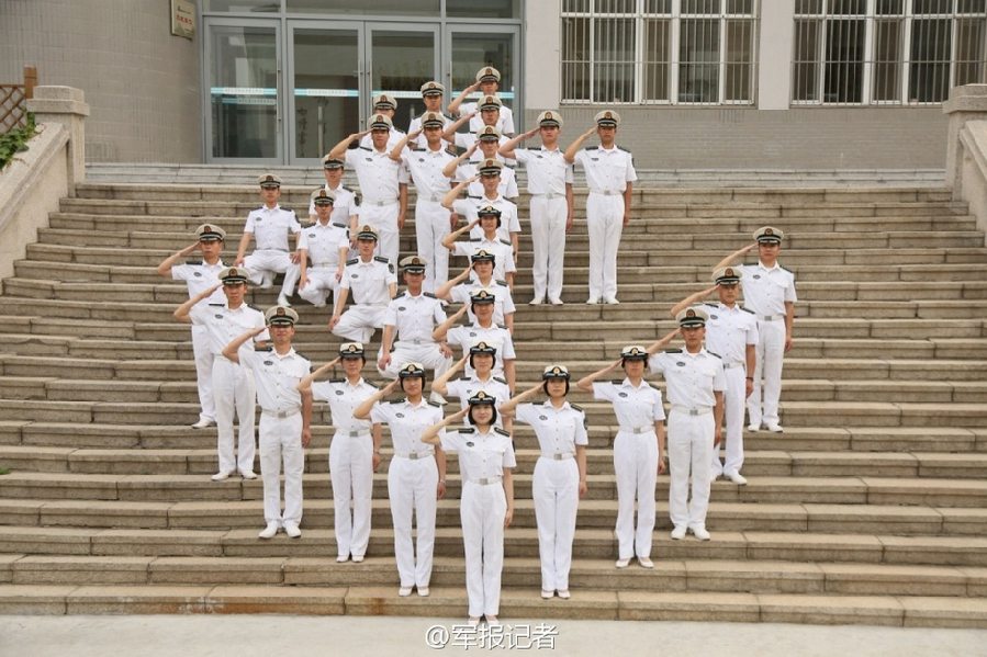 Cadets in PLA Dalian Naval Academy posed for photos at the conclusion of the graduation ceremony. (Photo source: Jie Fang Jun Bao)