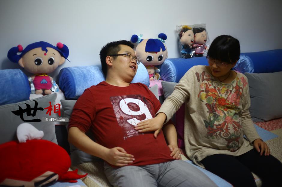 “Come and touch my belly. It is not smaller than yours. How many months pregnant am I?” Liu compares his belly with his wife and jokes with her. Liu spent more time with his wife as the expected date of confinement was approaching. (Photo/cnwest)