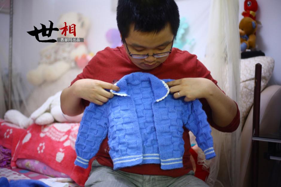 Liu shows a baby sweater made by his mother. (Photo/cnwest)