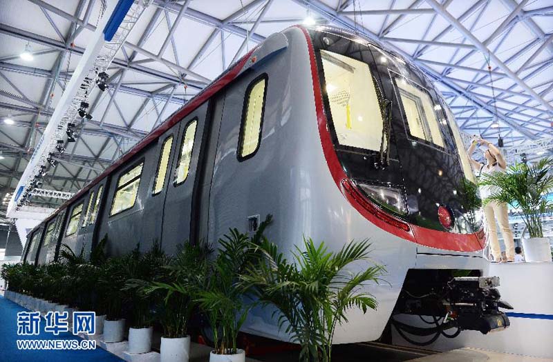 This picture shows the locomotive of the first driverless subway train at Rail+Metro China in Shanghai on June 17, 2014. It is said that this train with three carriages can carry 1,500 passengers at most. Having no cabin for the driver, the train looks like ordinary subway trains. Without the driver or stewards, this train automatically starts, departs from the station, goes uphill or downhill, stops in accurate alignment with the stations, opens and shuts the doors of carriages. (Xinhua/Lai Xinlin)