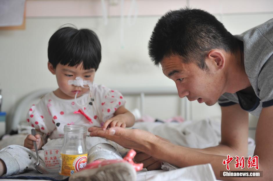 Wang Keran is happy when playing games with her father in the ward.(CNS/ Wei Liang)