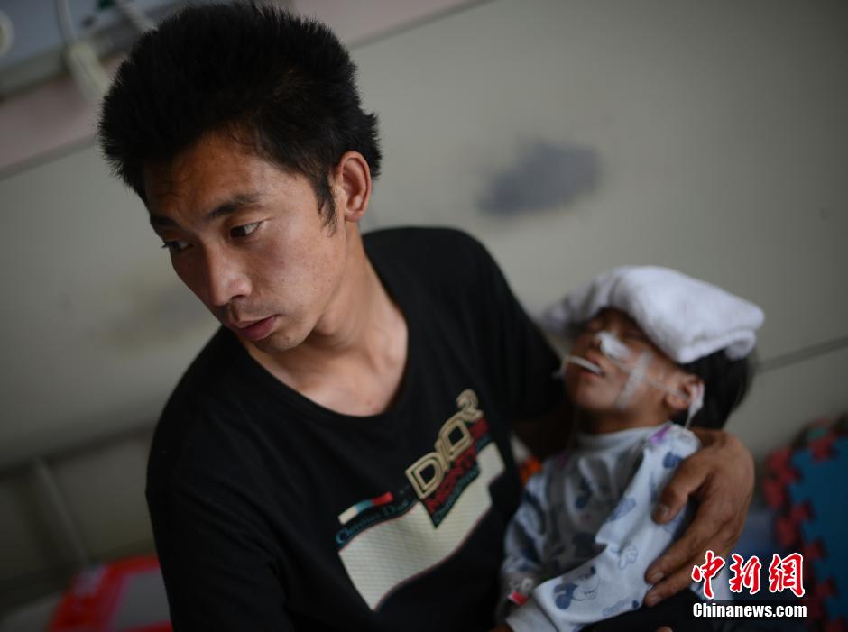 The father takes good care of Wang Keran on May 23, 2014.(CNS/ Wei Liang)