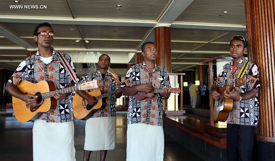 Artists perform at the lobby of a hotel in Nadi, Fiji, June 17, 2014. Nadi is located on the west of the island Viti Levu in Fiji. (Xinhua/Li Peng)