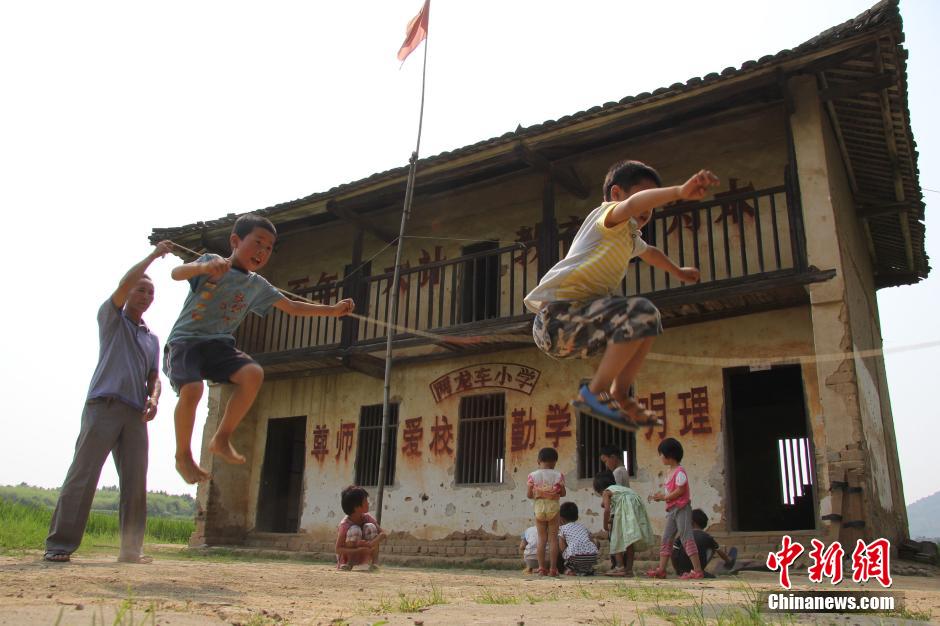 Zeng Xiangwei and his 13 pupils. Established in 1950, Lianglongche village school, located in a remote village in Dao County, Central China's Hunan Province, has only one teacher and 13 pupils. Zeng has been working there for 38 years. [Photo / Chinanews.com]
