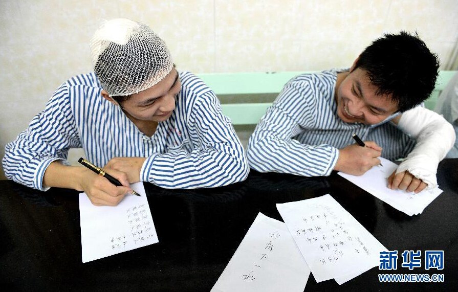 After a nap, Liu and Yi practiced calligraphy. Yi wrote down "Cherish the next second".(Photo/ Chen Zixia)