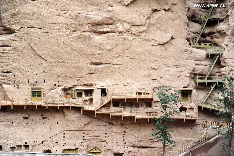 Photo taken on July 17, 2013 shows the Bingling Temple Grottoes in northwest China's Gansu Province. Bingling Temple Grottoes, filled with Buddhist statues, stupas and murals, were a work in progress between the 4th and 10th centuries. The famous ancient Silk Road, which served as a corridor for trade and cultural exchanges between Asia and Europe dating back to 2,000 years ago, was inscribed on the World Heritage list at Doha, capital of Qatar on June 22, 2014. Jointly submitted by China, Kazakhstan and Kyrgyzstan, the application for adding part of the millennium-old trade route to the UNESCO list was approved by the World Heritage Committee which convened its 38th session in Doha. (Xinhua) |