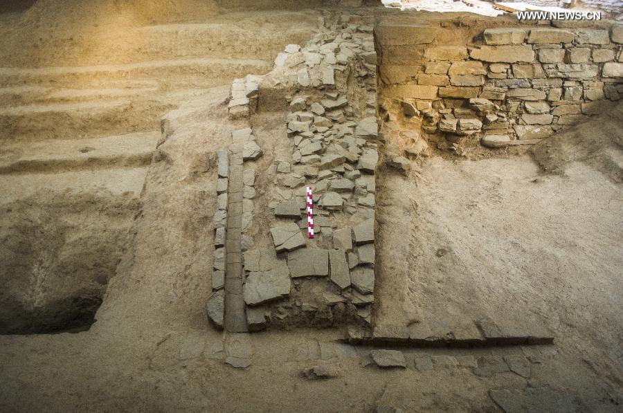 The file photo shows the packway and drainage channel at the ruins of Hanguguan Pass in Xin'an County of Luoyang City, central China's Henan Province. The famous ancient Silk Road, which served as a corridor for trade and cultural exchanges between Asia and Europe dating back to 2,000 years ago, was inscribed on the World Heritage list at Doha, capital of Qatar on June 22, 2014. Jointly submitted by China, Kazakhstan and Kyrgyzstan, the application for adding part of the millennium-old trade route to the UNESCO list was approved by the World Heritage Committee which convened its 38th session in Doha. (Xinhua) |
