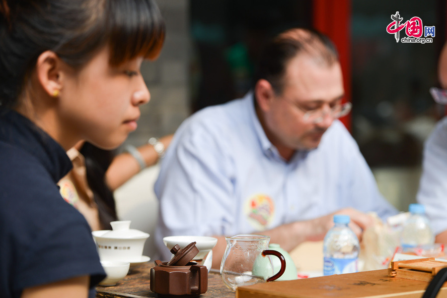 Authorities of Beijing's renowned Maliandao 'Tea' Street and Beijing's municipal government jointly launch a summer promotion on Saturday, June 21, 2014 to allow international people living in Beijing to have a better understanding of China's tea culture. (Photo: China.org.cn)