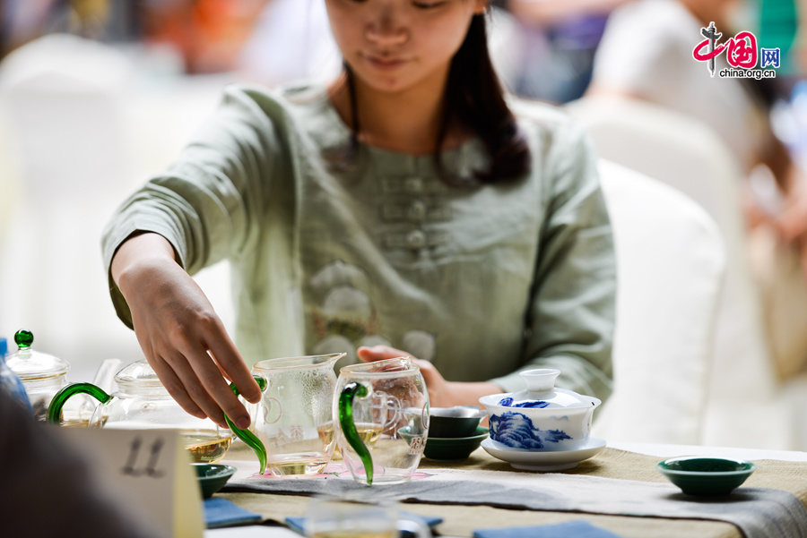 Authorities of Beijing's renowned Maliandao 'Tea' Street and Beijing's municipal government jointly launch a summer promotion on Saturday, June 21, 2014 to allow international people living in Beijing to have a better understanding of China's tea culture. (Photo: China.org.cn)