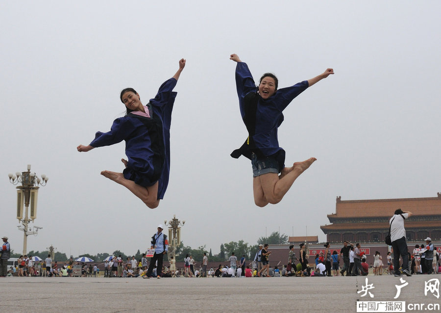 College girls take creative graduation photos at the Tiananmen Square, Beijing, June 19, 2014. (Photo: cnr.cn)
