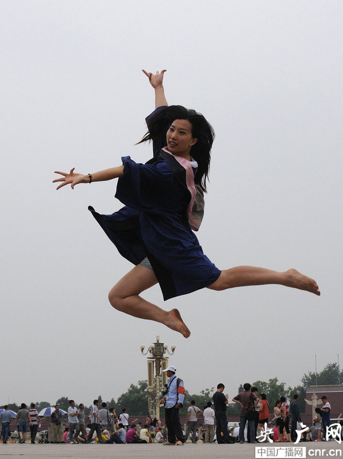 College girls take creative graduation photos at the Tiananmen Square, Beijing, June 19, 2014. (Photo: cnr.cn)