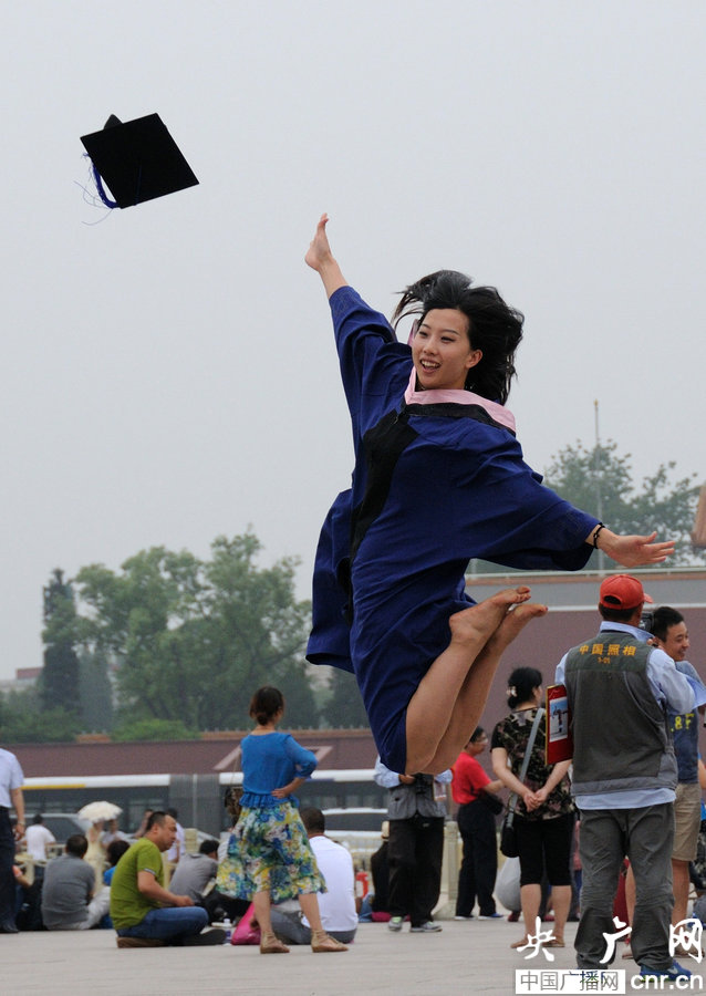 College girls take creative graduation photos at the Tiananmen Square, Beijing, June 19, 2014. (Photo: cnr.cn)