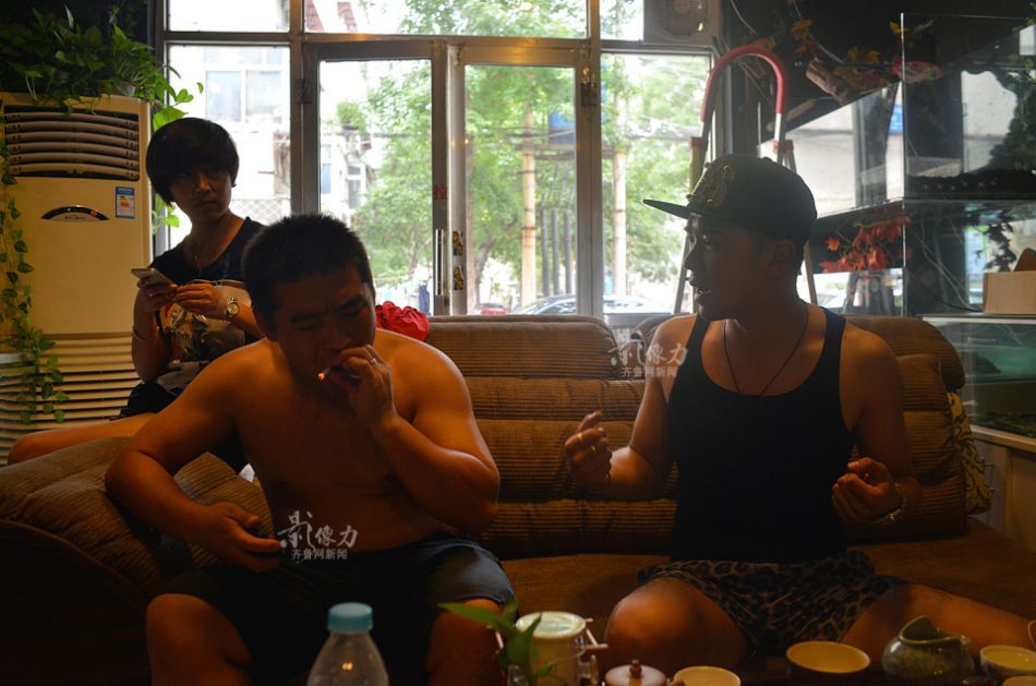 Zheng and his friends are in his bike shop. His life changed in 2009, when he opened a bike trial equipment shop and succeeded in a short period. "I imported titanium alloy bolts. I once earned over 300,000 yuan in one day." And the good luck lasted a whole month in 2009. (iqilu.com/Yu Peng) |