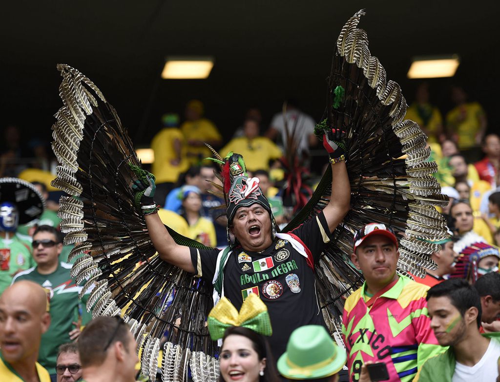 In the 2014 World Cup, many fans are dressed in animal and mascot costumes to support their favorite teams. (Xinhua photo)