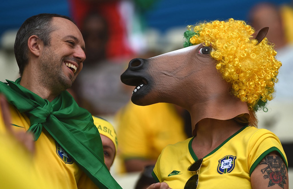 In the 2014 World Cup, many fans are dressed in animal and mascot costumes to support their favorite teams. (Xinhua photo)