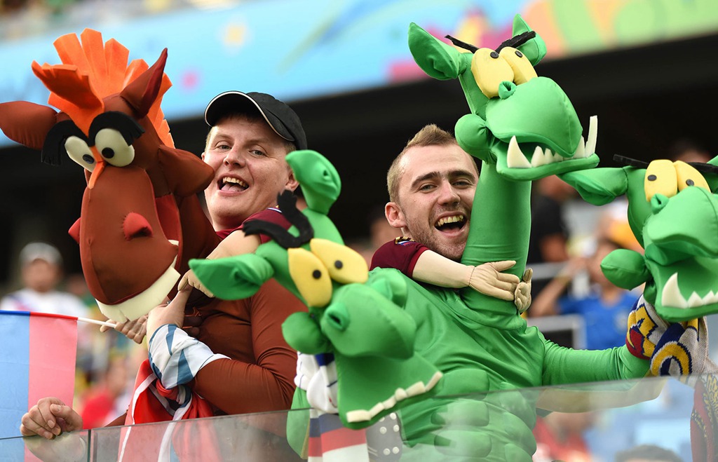 In the 2014 World Cup, many fans are dressed in animal and mascot costumes to support their favorite teams. (Xinhua photo)