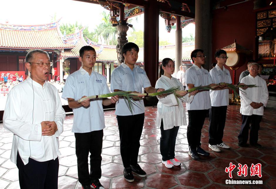 Over 100 students and parents participant in a praying ceremony, which is aimed at bringing the students good luck on their tests in Taipei on Saturday. (CNS/Chen Xiaoyuan)