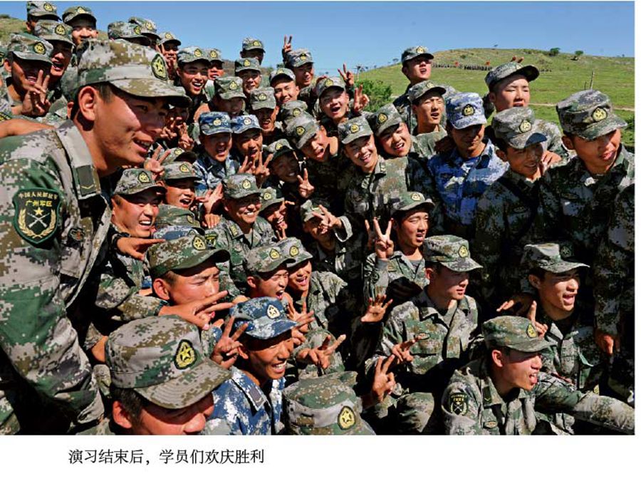 Students celebrate victory after the combat drills. (Photo source: plapic.com.cn)