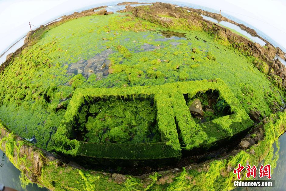On June 23, large quantities of green algae known as enteromorpha profiera hit the coast of Qingdao, eastern China’s Shandong Province. This is the seventh year since 2008 that green algae have sprouted here. At present, operations are being carried out to remove the green algae. (CNSPHOTO)