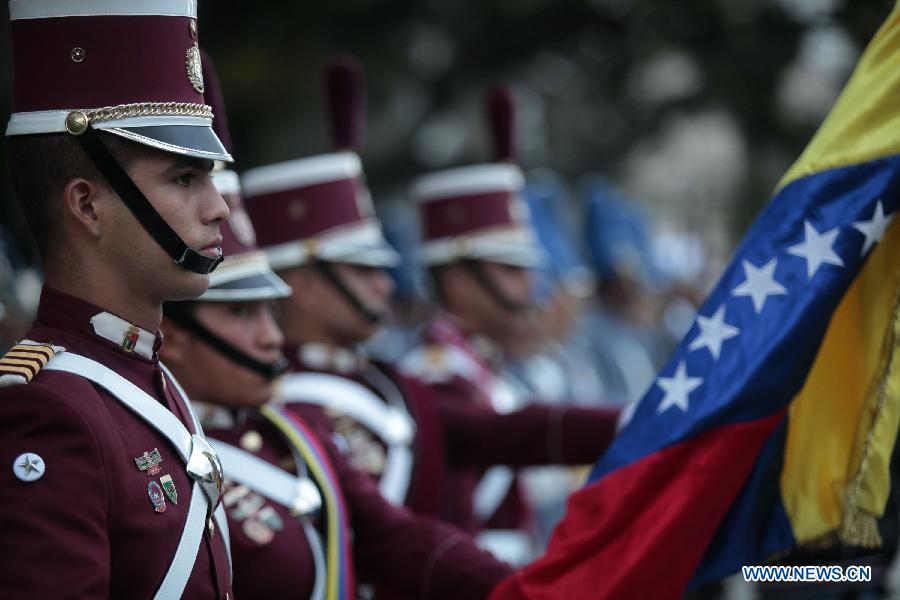 Cadets of the National Army of Venezuela take part in the national flag raising ceremony during the commemoration of 193 anniversary of Carabobo Battle and the Army Day, in Caracas, Venezuela, on June 24, 2014. (Xinhua/Ricardo Herdenez/AVN)