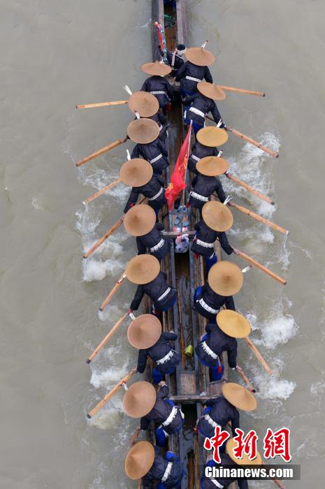 Miao people celebrate the annual Dragon Canoe Festival in Taijiang County, southwest China's Guizhou Province on June 22, 2014. Thousands of Miao people participated in the celebrations. They held the dragon canoe race to pray for a good harvest. The celebration would last for four days and a series of folk activities would be held. With a history of more than 2,000 years, the Dragon Canoe Festival has been listed as a national intangible cultural heritage. (Chinanews/Qiao Qiming)