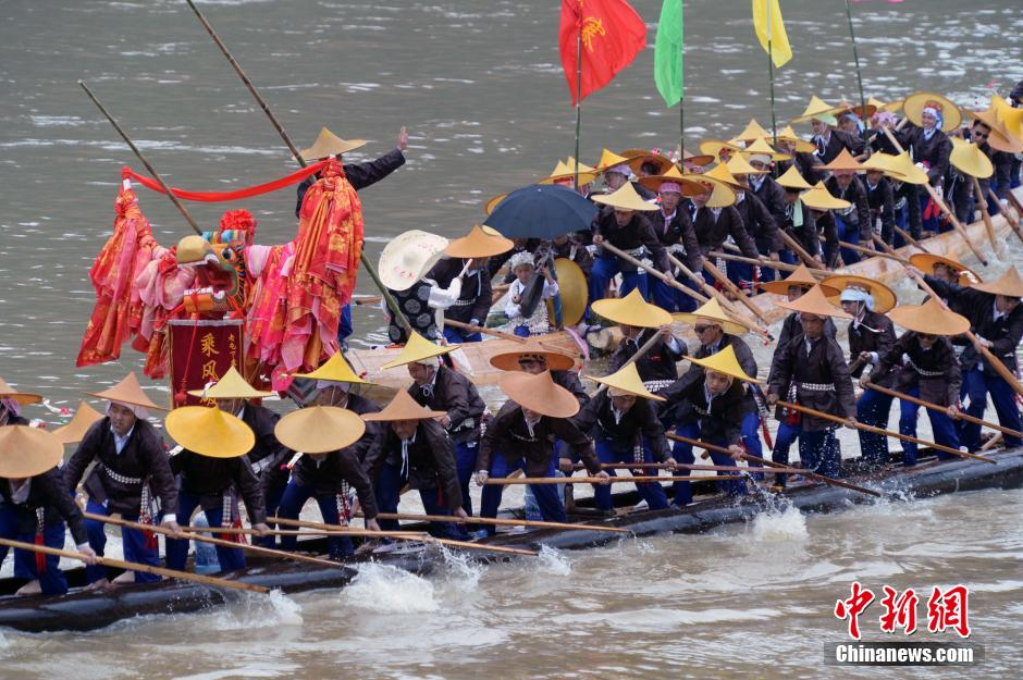 Miao people celebrate the annual Dragon Canoe Festival in Taijiang County, southwest China's Guizhou Province on June 22, 2014. Thousands of Miao people participated in the celebrations. They held the dragon canoe race to pray for a good harvest. The celebration would last for four days and a series of folk activities would be held. With a history of more than 2,000 years, the Dragon Canoe Festival has been listed as a national intangible cultural heritage. (Chinanews/Qiao Qiming)