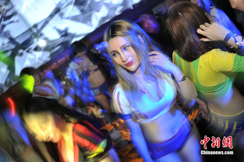 Passionate football babies and fans are seen in Beijing bars during the match of 2014 FIFA World Cup in Brazil. (CNS/Jin Shuo)
