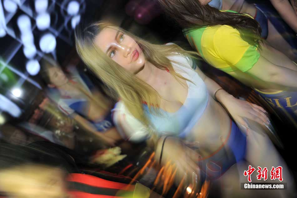 Passionate football babies and fans are seen in Beijing bars during the match of 2014 FIFA World Cup in Brazil. (CNS/Jin Shuo)