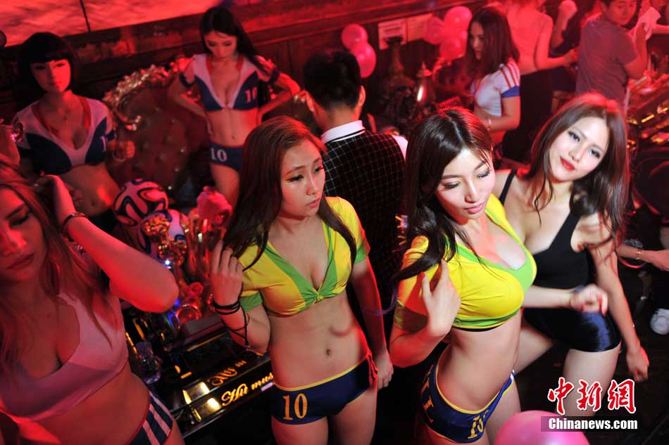 Passionate football babies and fans are seen in Beijing bars during the match of 2014 FIFA World Cup in Brazil. (CNS/Jin Shuo)
