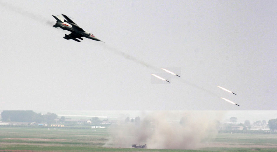 Recently, the air force of Shenyang Military Region conducted a live fire drill near the Bohai Bay. A group of Q-5 attackers flew 100 meters above the ground, avoided the radar and fired rocket shells on the ground targets with. All the participating pilots successfully fulfilled the tasks. (kj.81.cn/Xue Xiaoling and Shi Qichao)