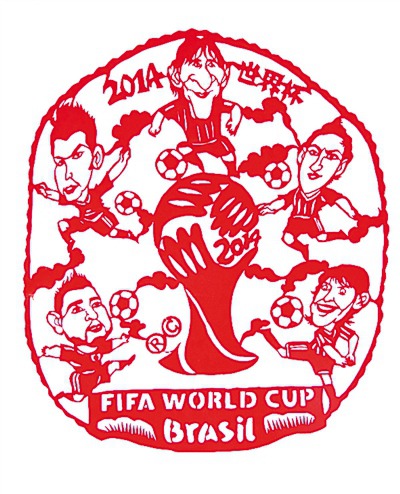 Using traditional skills, Meng portrays Portuguese football star Cristiano Ronaldo, Argentina's Lionel Andres Messi and Brazilian player Neymar da Silva Santos Junior vividly on paper with his scissors. (Photo/ People’s Daily Oversea Edition) |