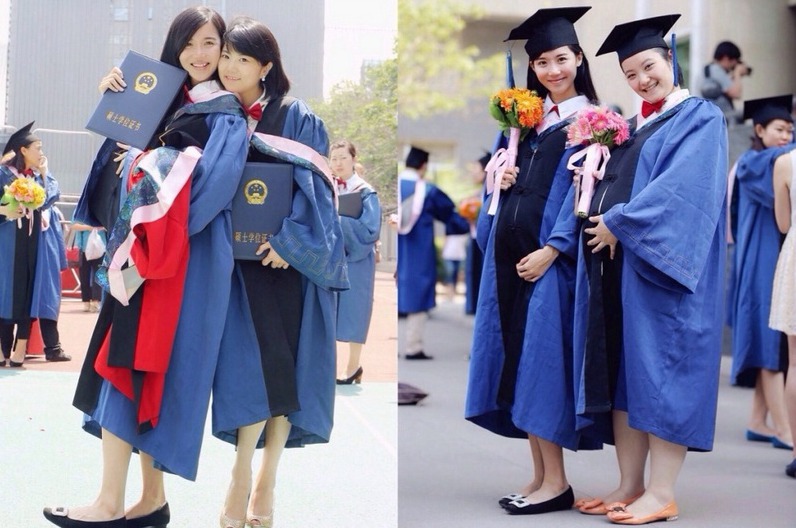 A woman master holder‘s graduation photos go viral on Weibo, a twitter-like social media in China. According to her Weibo, she gave birth to a boy in her second year of postgraduate study and conceived a girl while busy with her dissertation for the master degree. Netizens praised her for good arrangement of life. (Photo source: Guangzhou Daily) |