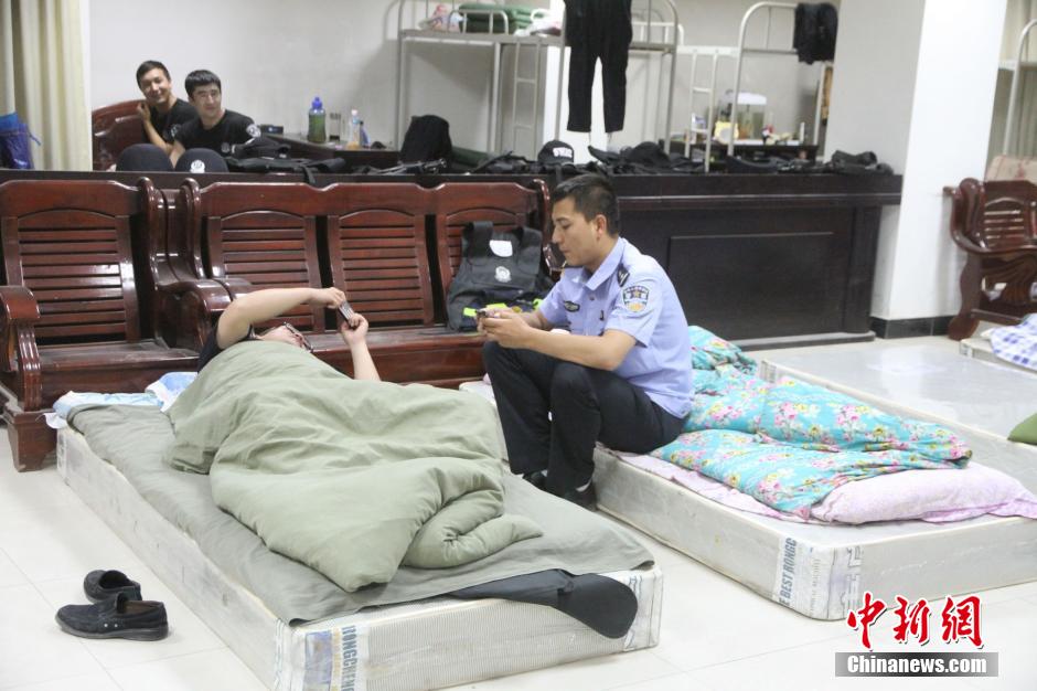 A conference room in the police station is transformed to the temporary accommodation of the policemen. (CNS/ Xiao Xin)