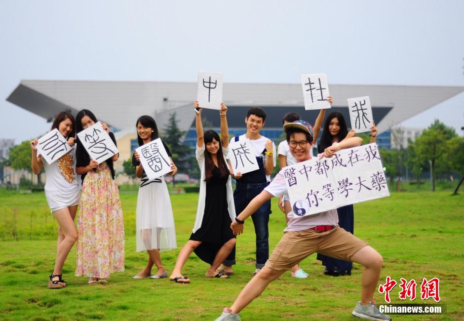 It is college enrollment season now. In addition to traditional ways of "snatching students", students in Chengdu University of TCM have done special "tricks" to help enrollment by taking a group of fresh and stylish photos to attract more students. (Chinanews.com/ Wen Siyi) |