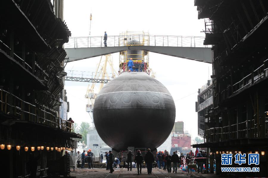 The Rostov-on-Don submarine is launched by Russia's Admiralty Shipyard in St. Petersburg on June 26, 2014. (Xinhua)