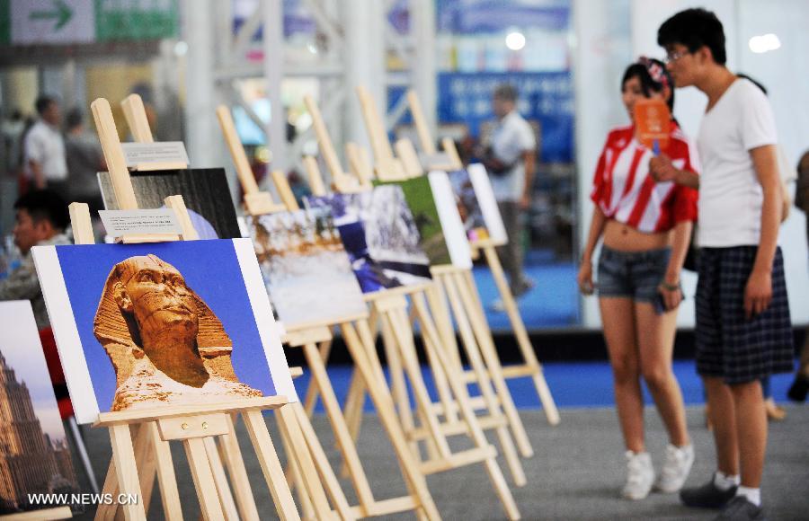 Photo taken by Russian Prime Minister Dmitry Medvedev are shown on display at the China-Russia Expo (CR Expo) in Harbin, capital of northeast China's Heilongjiang Province, June 30, 2014. The expo, which kicked off on June 30, will last until July 4. (Xinhua/Wang Jianwei)